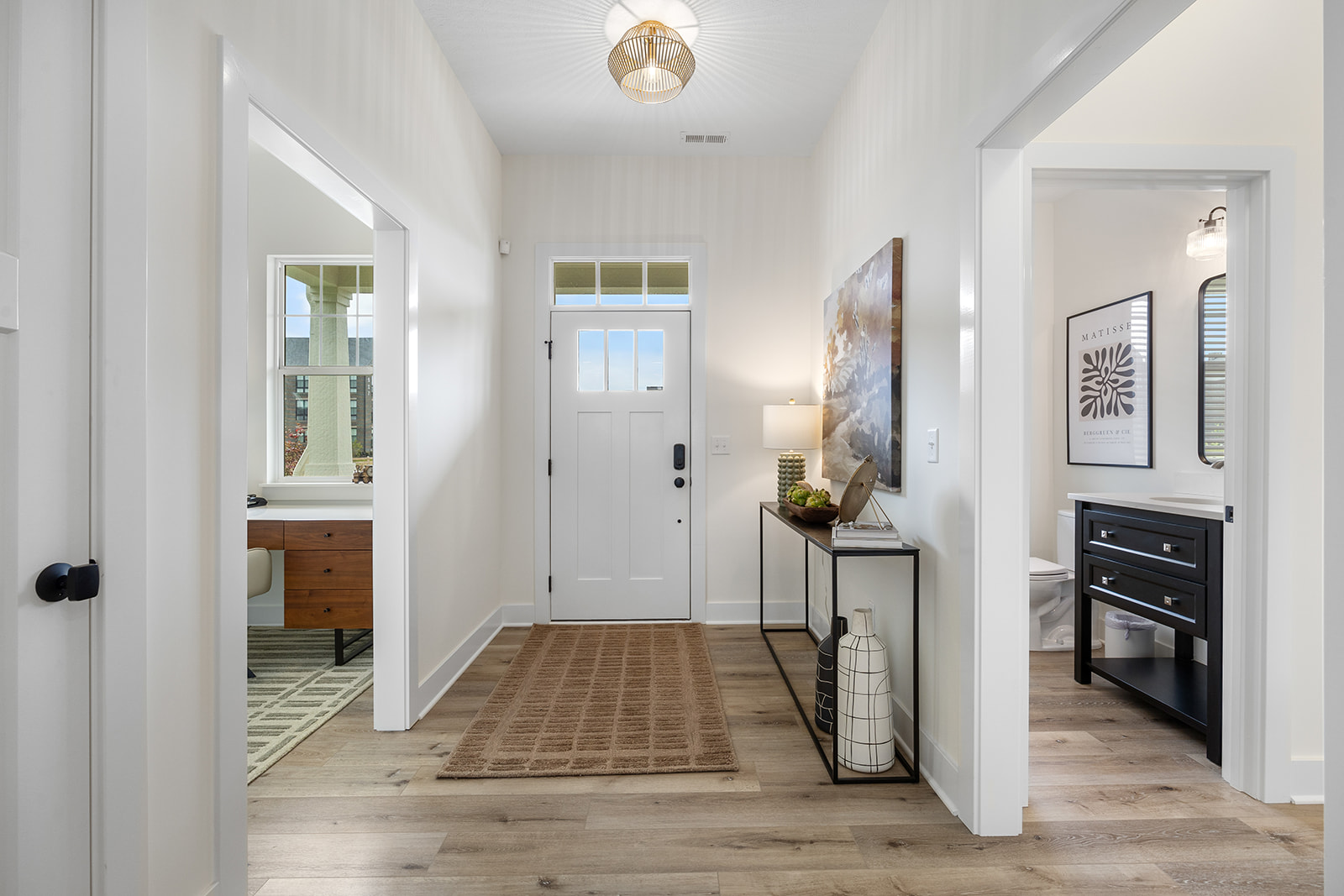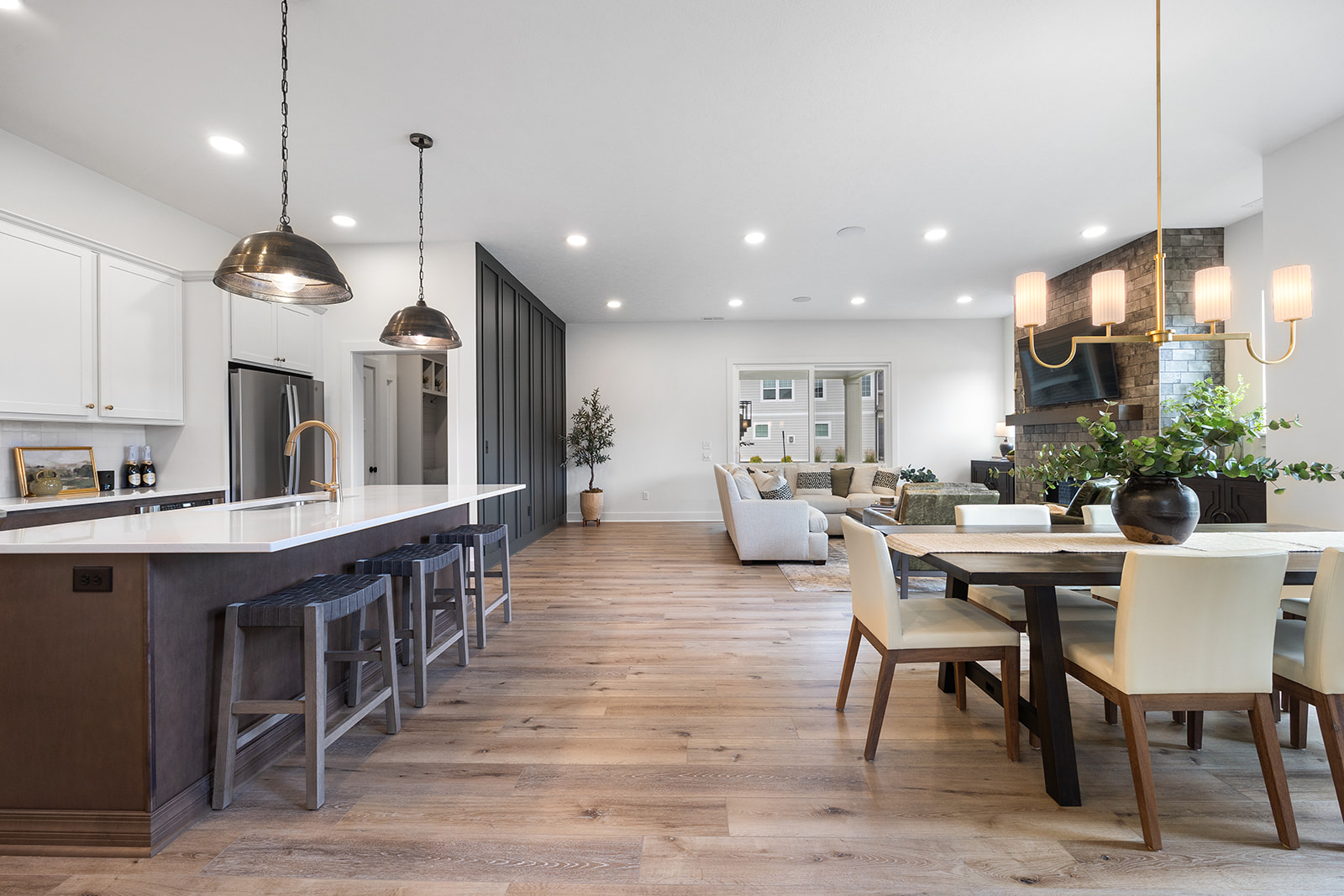 This model home is inspired by our Elm plan, featuring an upper level loft, primary on the main floor, pocket office and outdoor living space.